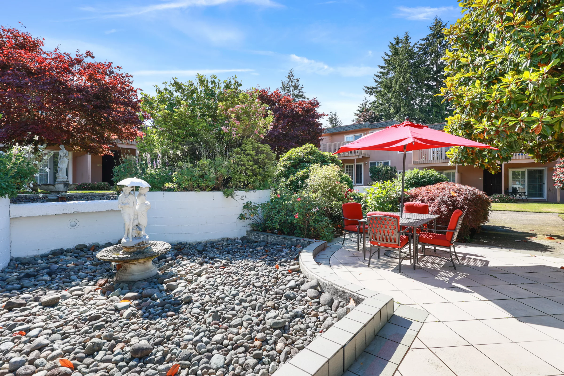 Thanks for checking out Fountain Courte Apartments. We are a locally owned and professionally managed community in Tacoma, WA. Fountain Courte is conveniently located off Hwy 16, with nearby shopping, YMCA, Tacoma Community College, walking trails, and public transportation. Our 1- and 2-bedroom apartment homes are a great value, featuring a refrigerator, range, dishwasher, and storage area. Select homes come with a washer and dryer, and for those without we have on-site laundry facilities. Our community features a secure entry, carports, and beautiful fountains nestled within our courtyard.